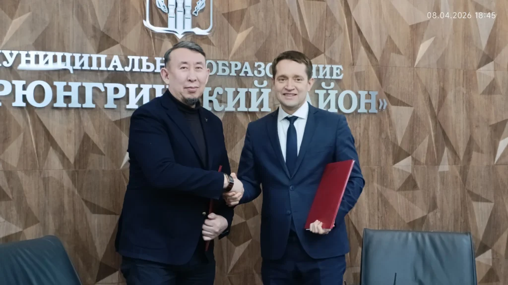Затем состоялось подписание соглашения о сотрудничестве и содействии в проведении адаптационной работы между и. о. главы администрации Нерюнгринского района Максимом Терещенко и руководителем ЦАИГ Давидом Арханом.